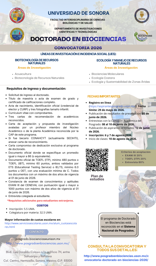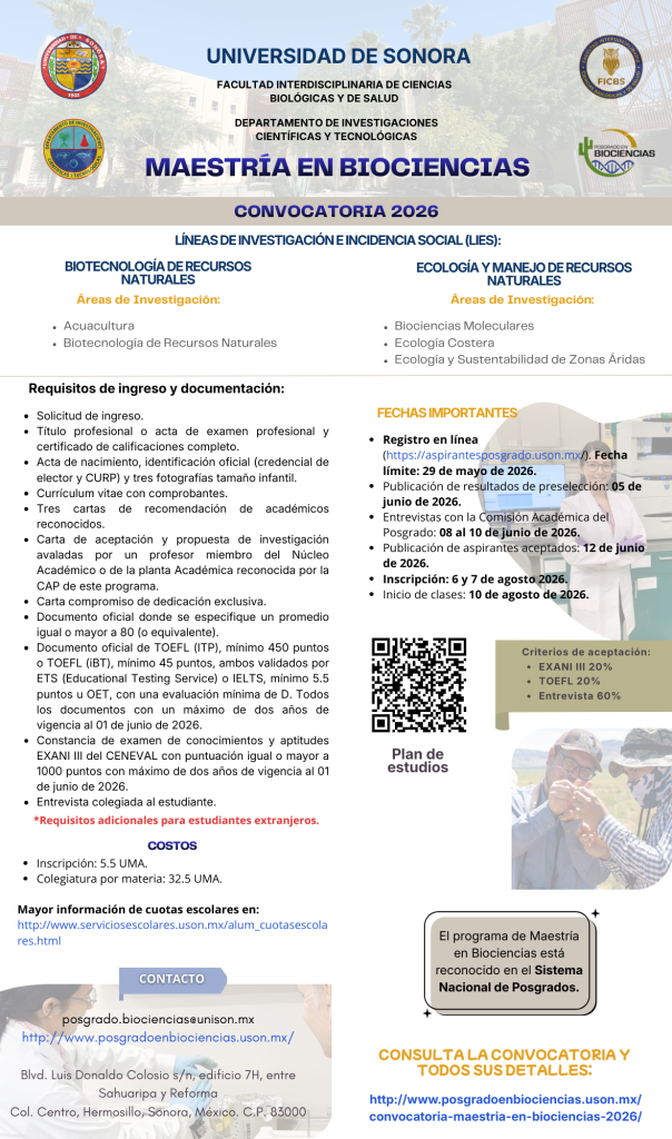 CONVOCATORIA MAESTRÍA EN BIOCIENCIAS 2026