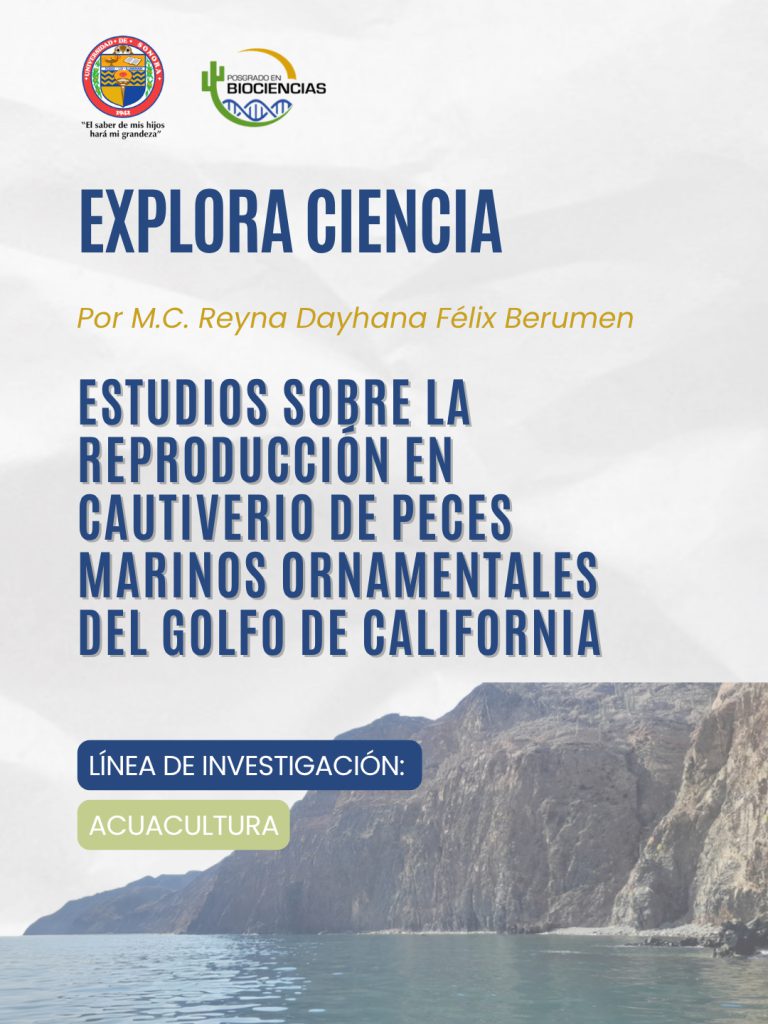 En colaboración con la M.C. Reyna Dayhana Félix Berumen - Estudiante del Doctorado en Biociencias Conoce el proyecto “Estudios sobre la reproducción en cautiverio de peces marinos ornamentale